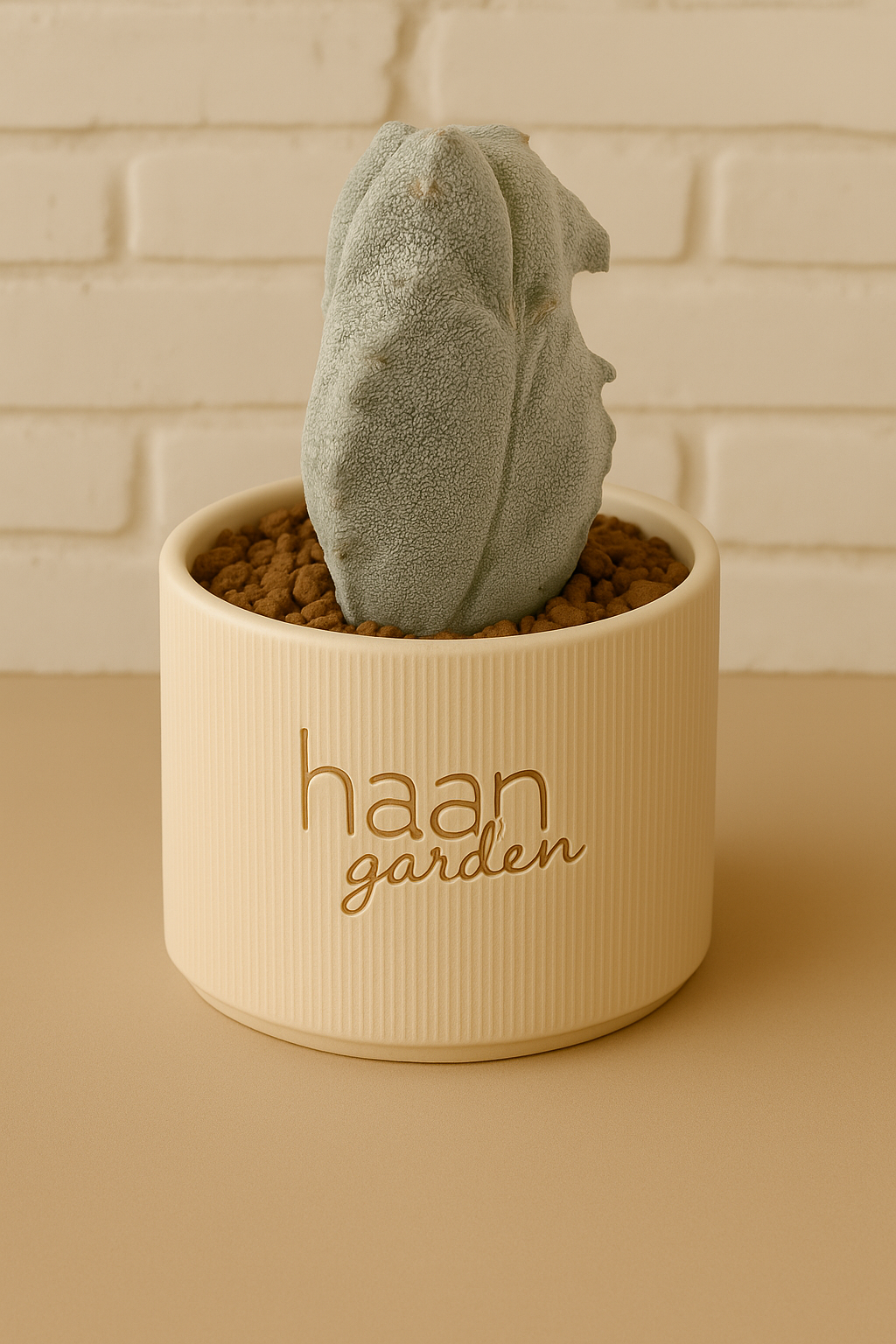 🌍 Orijin: Meksika’nın Coahuila bölgesinden gelen Astrophytum myriostigma coahuilense’in Japon üretim varyetesi olup, “Kikko line” selektif üretimle stabilize edilmiştir.