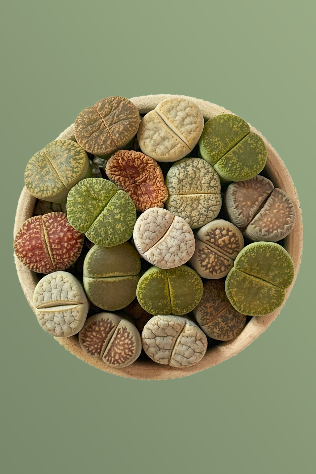 • 🪨 Canlı Taş Görünümü: Lithops Ssp., doğal taşları andıran yapısıyla kamufle olan eşsiz bir sukulent türüdür.