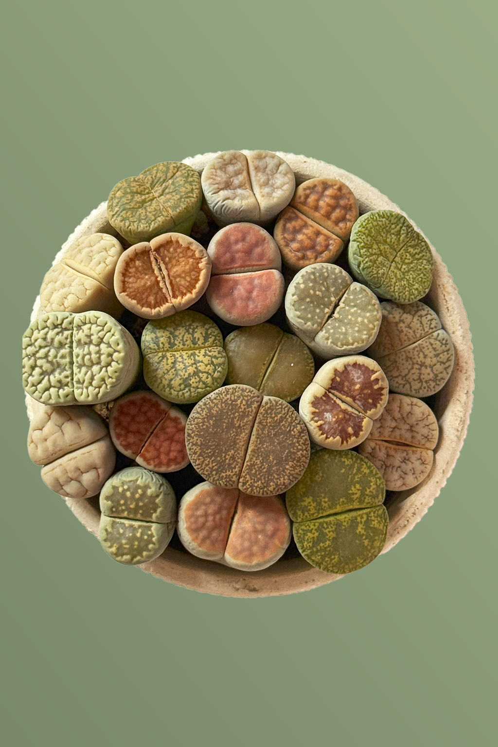 • 🪨 Canlı Taş Görünümü: Lithops Ssp., doğal taşları andıran yapısıyla kamufle olan eşsiz bir sukulent türüdür.