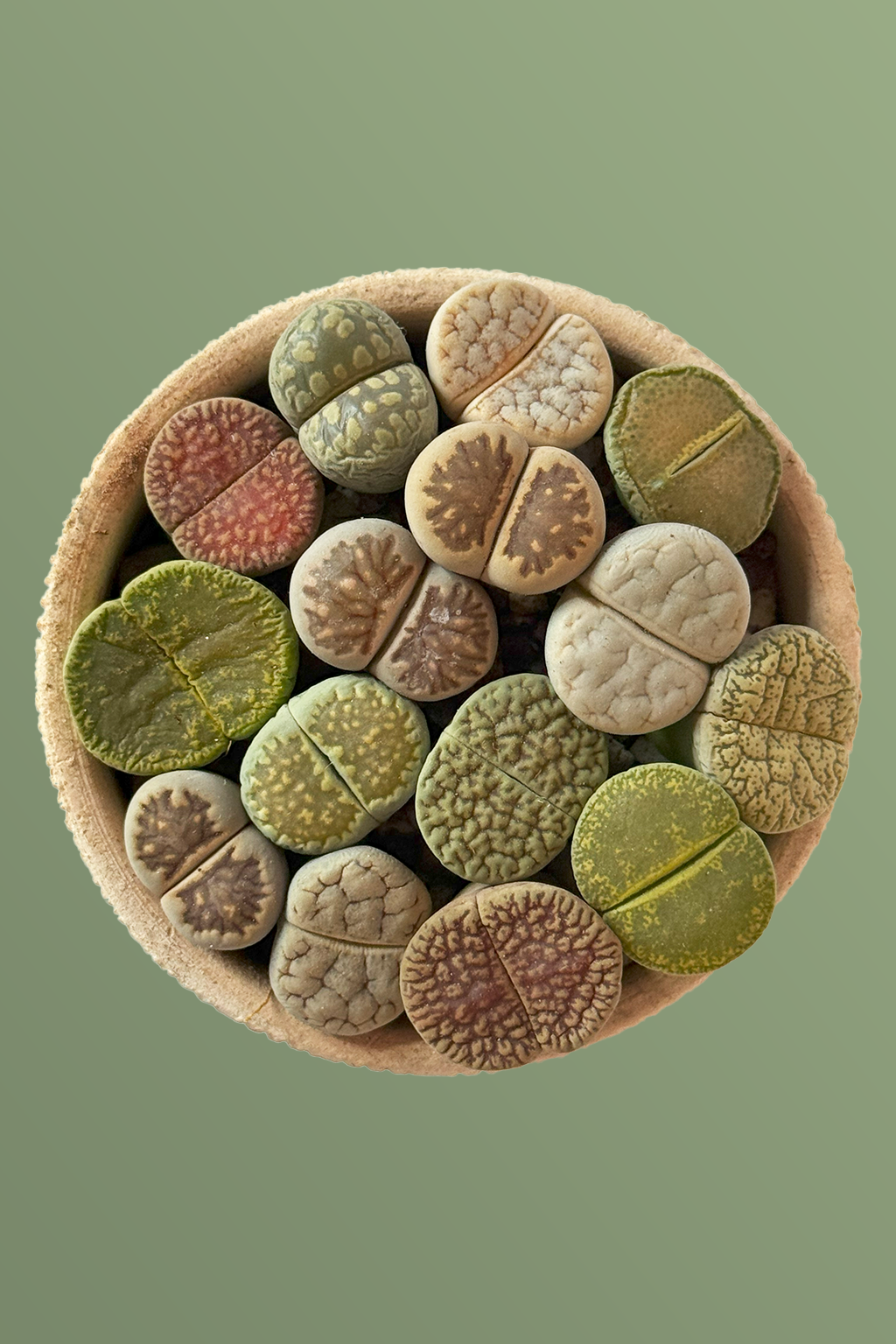 • 🪨 Canlı Taş Görünümü: Lithops Ssp., doğal taşları andıran yapısıyla kamufle olan eşsiz bir sukulent türüdür.