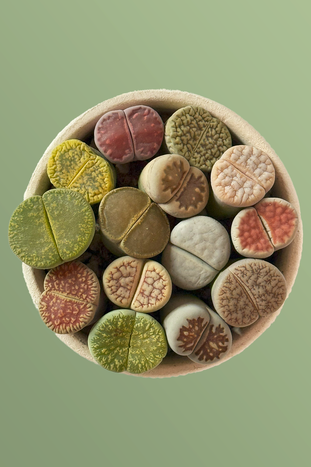 • 🪨 Canlı Taş Görünümü: Lithops Ssp., doğal taşları andıran yapısıyla kamufle olan eşsiz bir sukulent türüdür.