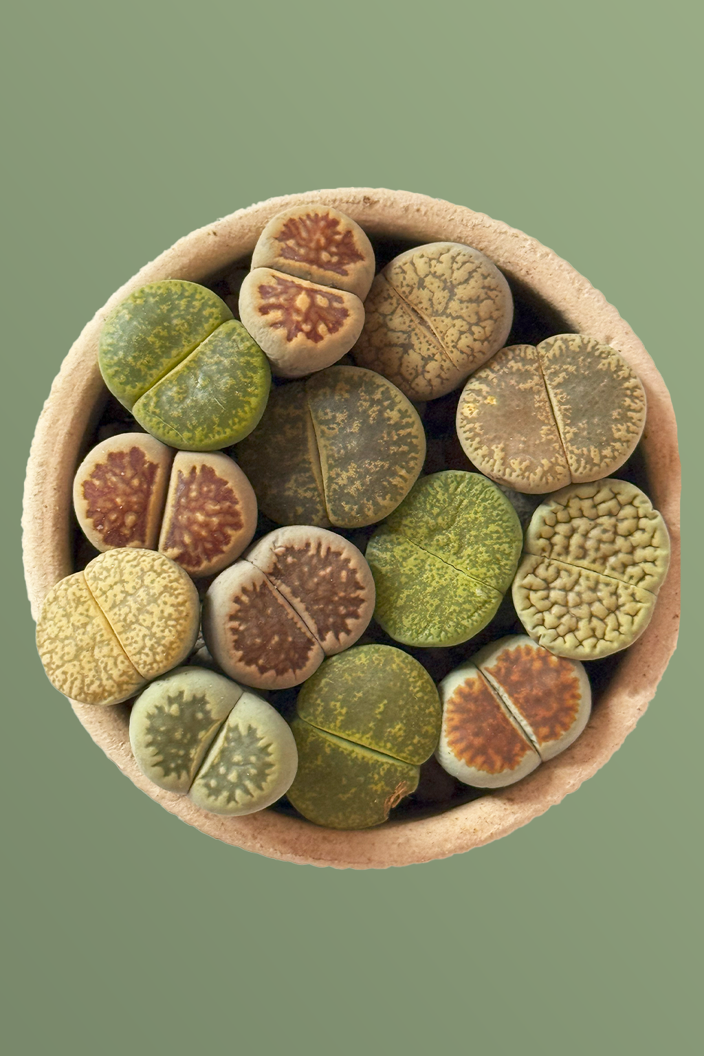 • 🪨 Canlı Taş Görünümü: Lithops Ssp., doğal taşları andıran yapısıyla kamufle olan eşsiz bir sukulent türüdür.
